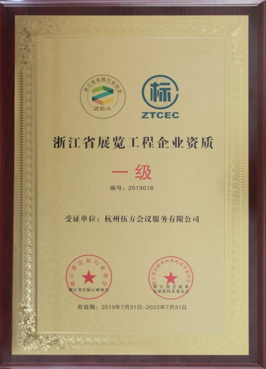伍方資訊丨恭喜伍方通過評(píng)審成功獲得浙江省展覽工程企業(yè)資質(zhì)一級(jí)證書