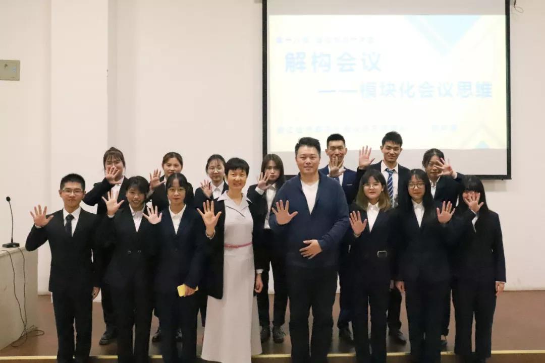 2019年10月29日,浙江伍方數(shù)字化會研究院院長郭嶺楠受邀前往杭州科技職業(yè)技術學院進行交流分享,針對會展調研的課題與由黎老師和周老師以及他們代領的博聞會獎工作坊的同學進行交流討論,并且再一次帶著“伍方大講堂”進入校園,向全體會展專業(yè)的在校同學分享了一場以“解構會議——模塊化會議思維”為主題的大講堂。