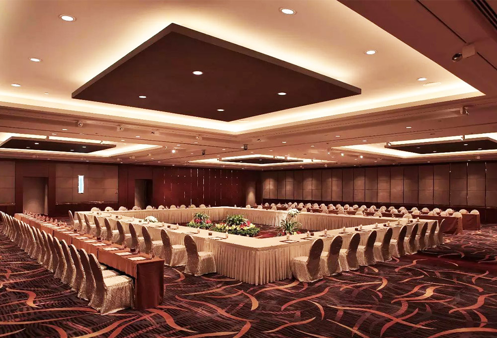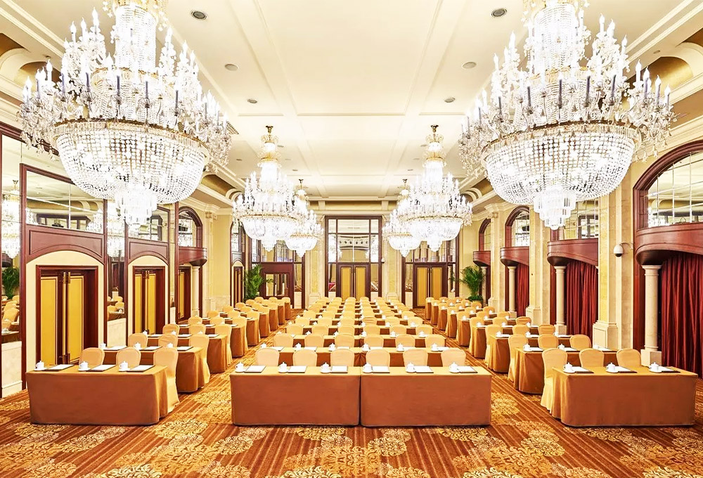 酒店擁有1780平方米的無柱式超大宴會廳、可容納千人的劇院式報告廳、城中獨有的環(huán)形峰會式會議廳、新聞發(fā)布廳和20多個不同規(guī)模的中小型多功能廳,為各種規(guī)格會議以及婚宴提供多樣化選擇。