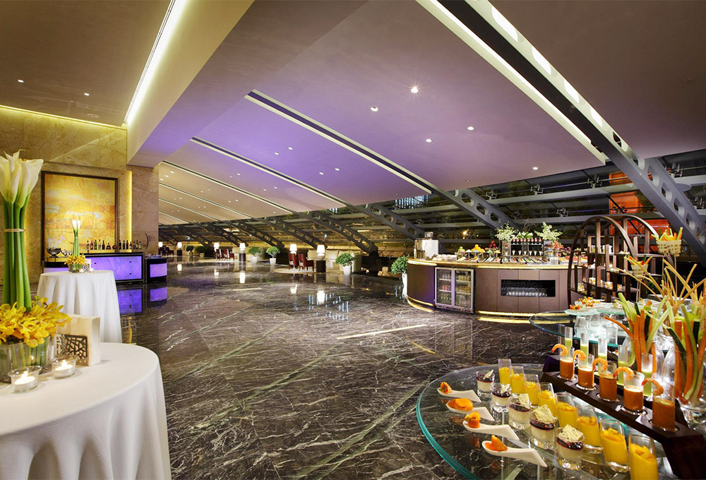 全球第一家擁有全方位、高科技智能體系的智能酒店。每個宴會廳均可為各種宴會提供高達1200平米的大型場地,七米的挑高空間設計,盡顯高貴典雅氣質。